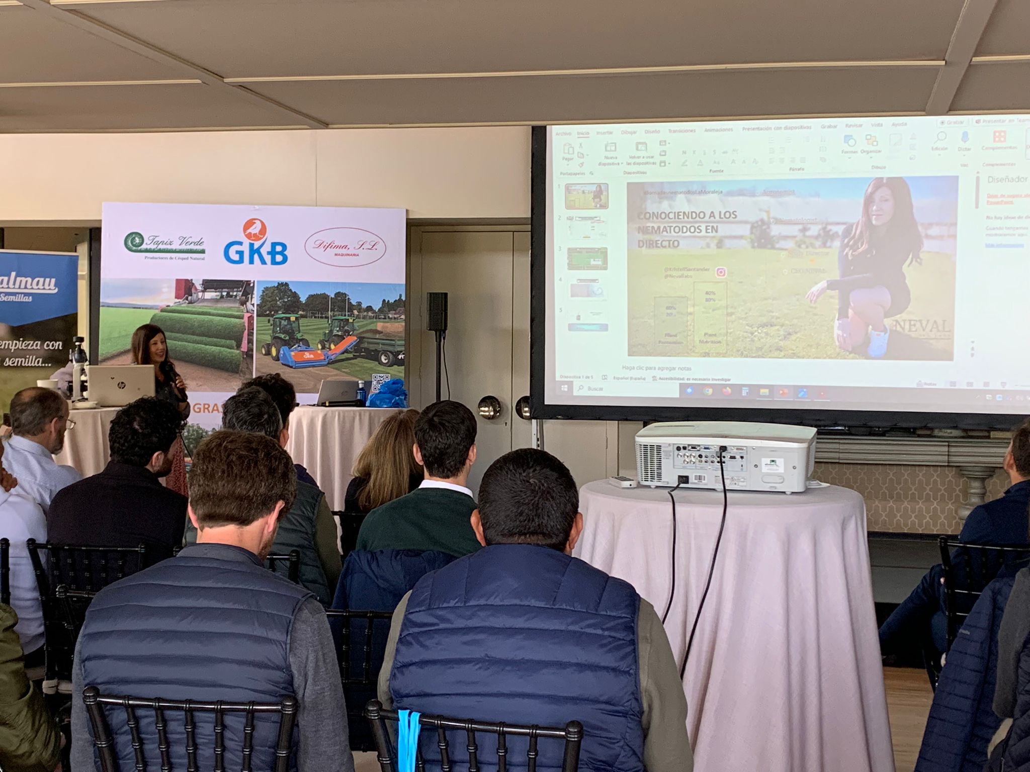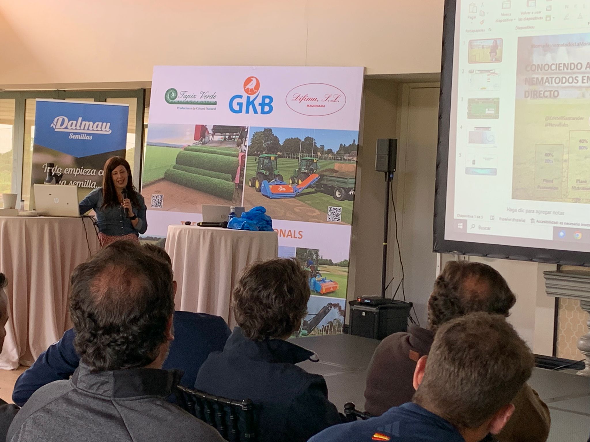 Además no faltaron invitados de la parte de Investigación y Educación como la Universidad de Castilla la Mancha con Carolina Escobar, el Colegio de Agrónomos del Levante con Almudena Sanz, Escuela de Formación Agraria EFA la Malvesía con María Gómez e Ignacio Soto, empresas preocupadas por las problemáticas en el césped como Bioibérica con productos a base de aminoácidos para superar estreses abióticos con David Beitia, la empresa AlgaEnergy que tienen una amplia gama de productos basados en Algas, con Estefanía hinarejos además ex presidenta de “Internacional Biocontrol Manufacturers Association (IBMA España)”.