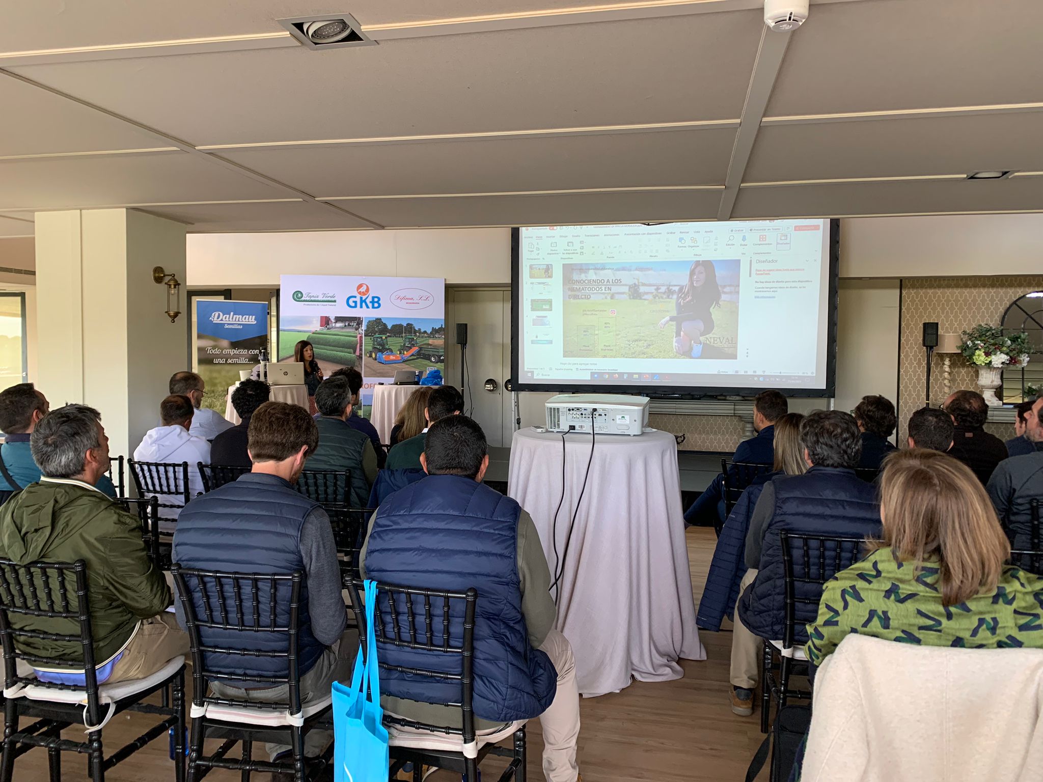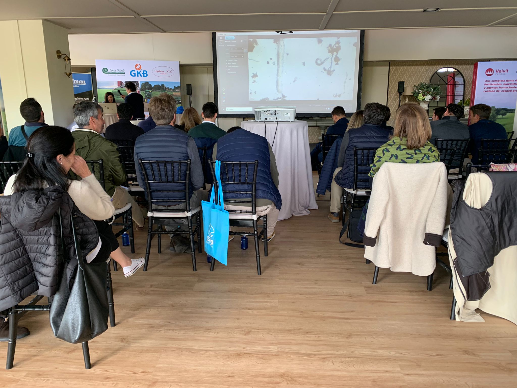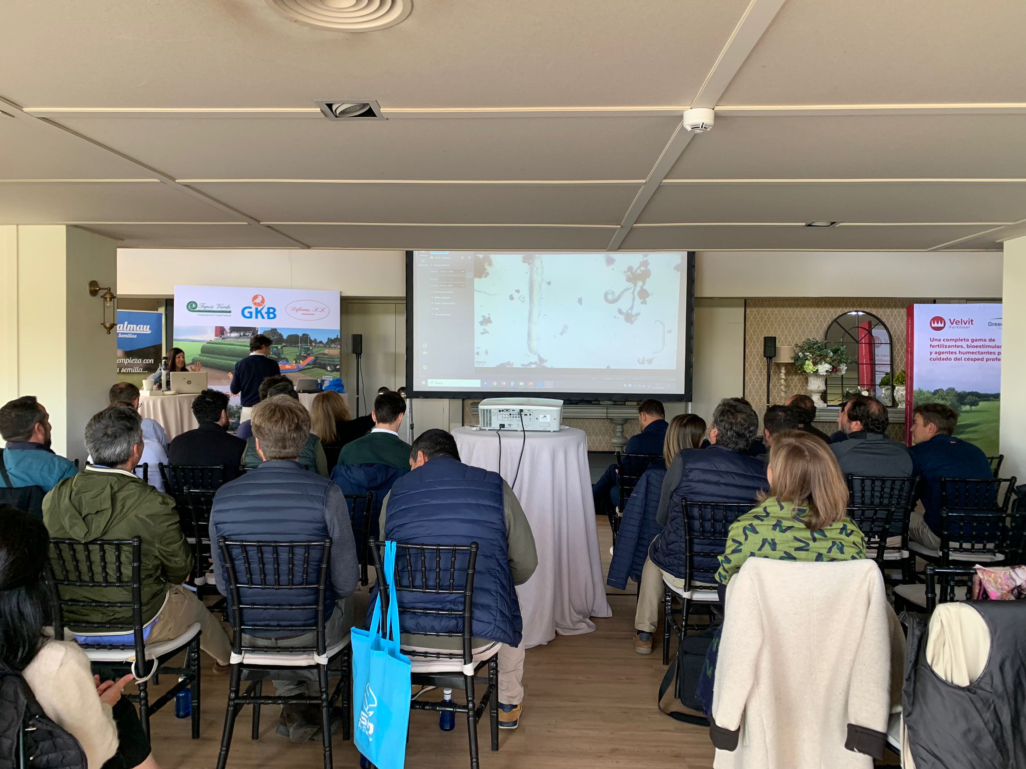 El equipo de mantenimiento Del Real Madrid FC. Los representantes de Tragsa y Eulen, Pedro Fernández Bolaños de “La Liga” , Mantenimiento Del Real Club de Puerta de Hierro, Club de Campo Villa de Madrid , David Gómez Aguera Real Federación Española De Golf y su equipo, María del club de campo junto a Javier Villasante y Andrés y los diseñadores de campos de golf Luis Espinosa y Leopoldo Espinosa de Garden & Golf, Gonzalo Millán de Target ingenieros, Carlos Gallego constructora de Golf GTM, Juanma López Bellido de real sociedad hípica de Madrid, Jimena Blanco de La Sella golf, Jose Marín greenkeeper de golf El Encin y golf Olivar de la Hinojosa , delegado de los greenkeepers de zona centro, no podían faltar Stephen John Mcmahon y Anthony Bonnet de La Moraleja.